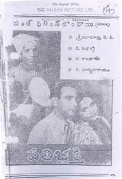 Director: P.S. Srinivasa Rao; Producer: P.S. Srinivasa Rao; Cinematographer: K.H. Kapadia; Editor: Kanthilal Sukur; Cast: B.T. Murthy, Meduri Subbarao, K. Rajagopala Suri, K. Suryanarayana, Master Madhu, Dasari Subadra, T. Shanthadevi, Leelakumari, Kanakaratnam, Lalita, Thathachari, P.S. Srinivasa Rao, Jampana, Krishna