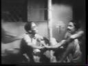 As the police swoop down on Srikanta's house and arrest him, the two landlords are shown standing under a tree and leering frontally. The mixture of narrative idioms is quite pointed here. On the verandah the scene of the couple: Srikanta sensing the danger and asking his wife what she would do if something happens. As he mentions this she gives a start and her vermillion dot is smudged – a very familiar melodramatic action. This is also the climax: the door latch shakes, the boots stamp on it, the two villains under the tree watch. While the two are presented in the manner of ‘cut-outs’ reminiscent of contemporary drama, dance drama and agitational pantomime, the police onslaught is more in tune with cinematic rhetoric. The quick cutting back and forth, the oblique angles, the accelerated montage and the suggestive exposition where we do not see the police at all but only the boots and the handcuffs evoke among other things the Russian films that were shown by the IPTA and then the Calcutta Film Society in the late 1940s.