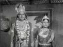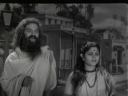 Bharani Studios’ remake of Y.V. Rao’s Tamil mythological, Chintamani (1937). Chintamani (Bhanumathi), forced into prostitution by her mother, falls in love with the merchant Bilwamangal (NTR). The latter reciprocates her feelings, which leads to much tragedy, revealed in mystical imagery: his wife’s corpse and a python help Bilwamangal cross a river to be with his beloved. Chintamani is disillusioned, prompting the gods Krishna and Rukmini to descend to earth to show her the right path. The legend was filmed repeatedly, some versions presenting it as a biography of the saint poet Surdas (Homi Master’s silent Bilwamangal, 1929; Madan Theatres’ Bilwamangal, 1932). Most Hindi and Bengali versions tell the story from the male perspective, following Girish Ghosh’s famous play Bilwamangal (1886), but the South Indian films narrate Chintamani’s tale. Although at times accused of plagiarising