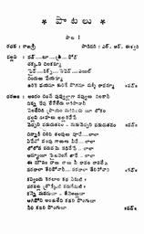 Song: Lavokkimthayu ledhu Dhairyamu Vilolambayye (Padyam)