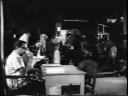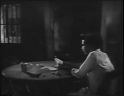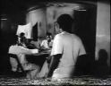 Strongly theatrical mise-en-scene introduction to all four characters living in the house. Karunan leaves the window and begins a game of cards with no other player, then tries to role and light a beedi. The two sisters, Ramani and Latha introduced, and their father. The indistinct chatter already introduces a threatening external space that will soon intrude into the house. It is perhaps of interest that P.J. Anthony's theatrical practice is attached to an Ibsenite legacy (Doll's House etc).